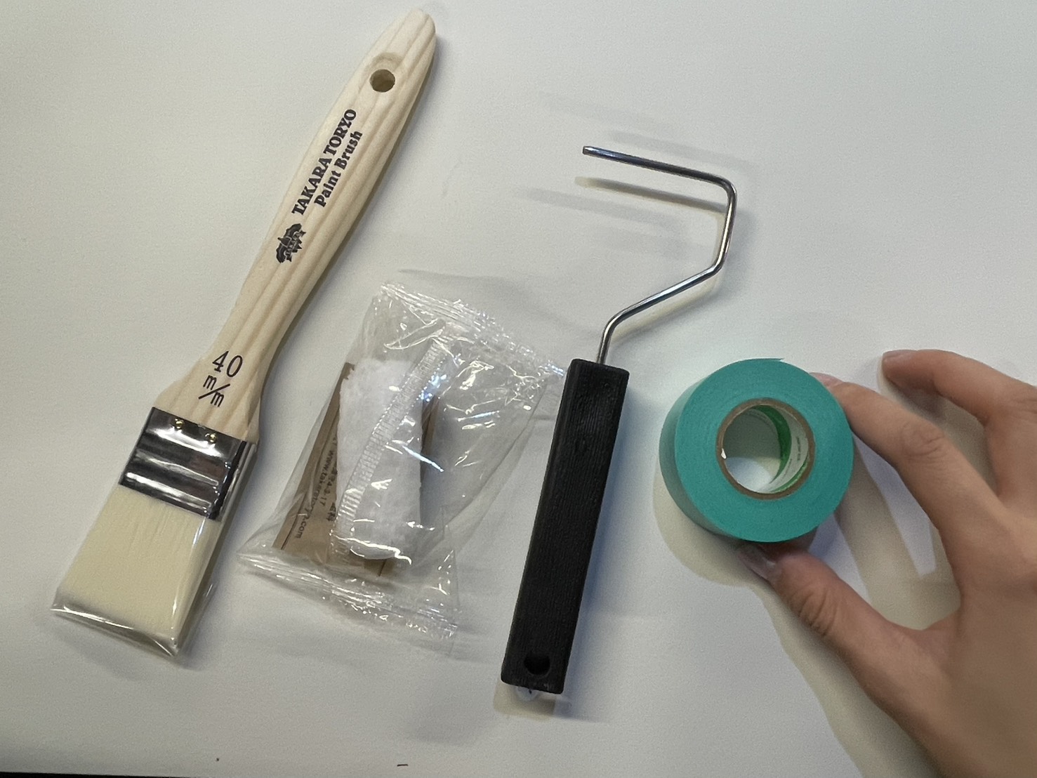 必要な塗料と塗装道具、塗装しない箇所が塗料で汚れないように守る「マスキングテープ」も一緒にお選びいただきました。