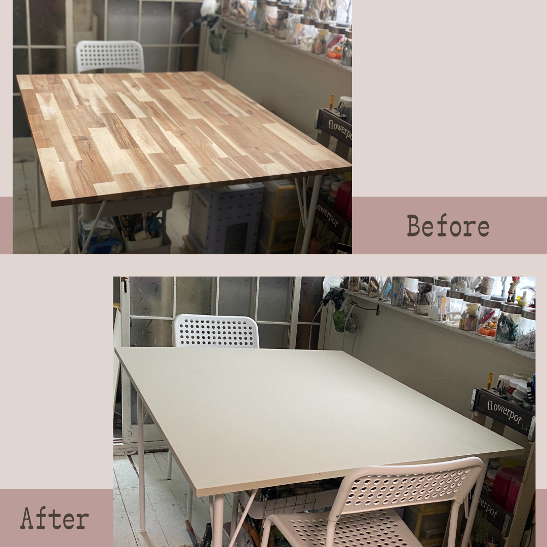 食卓のテーブルは現状、リメイクシートを貼っていて端の方が剥がれて来ているので、剥がして好きな色に塗りたいとのこと。