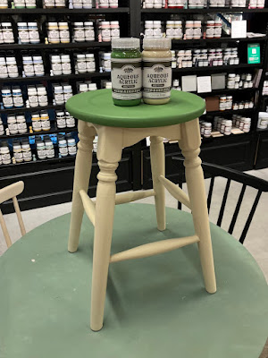 京都店にある実際に塗ったスツールを見てもらい「これくらいなら塗れそう!」と、ご自宅の植物を飾るスツールに塗ってみようとおふたりで色を選ばれていました。