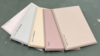 プリント合板のような感じでシートが貼られているとのことだったので、2パターンの塗装方法をお伝えいたしました。