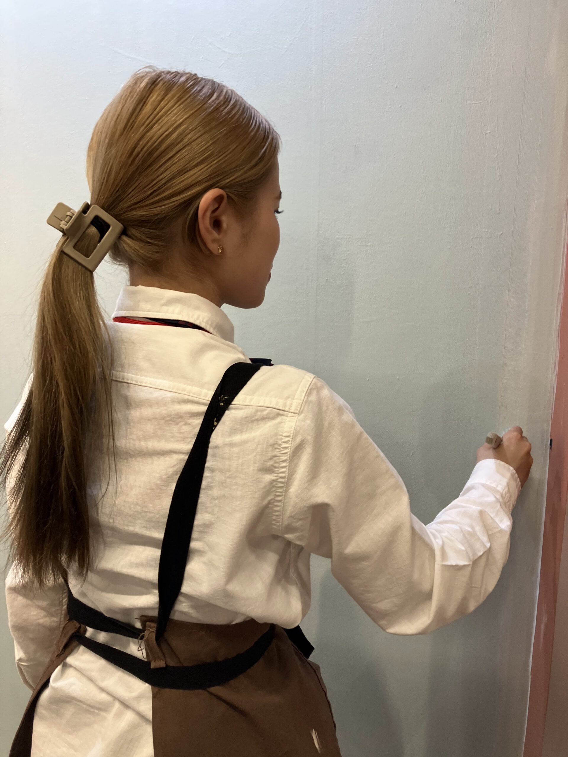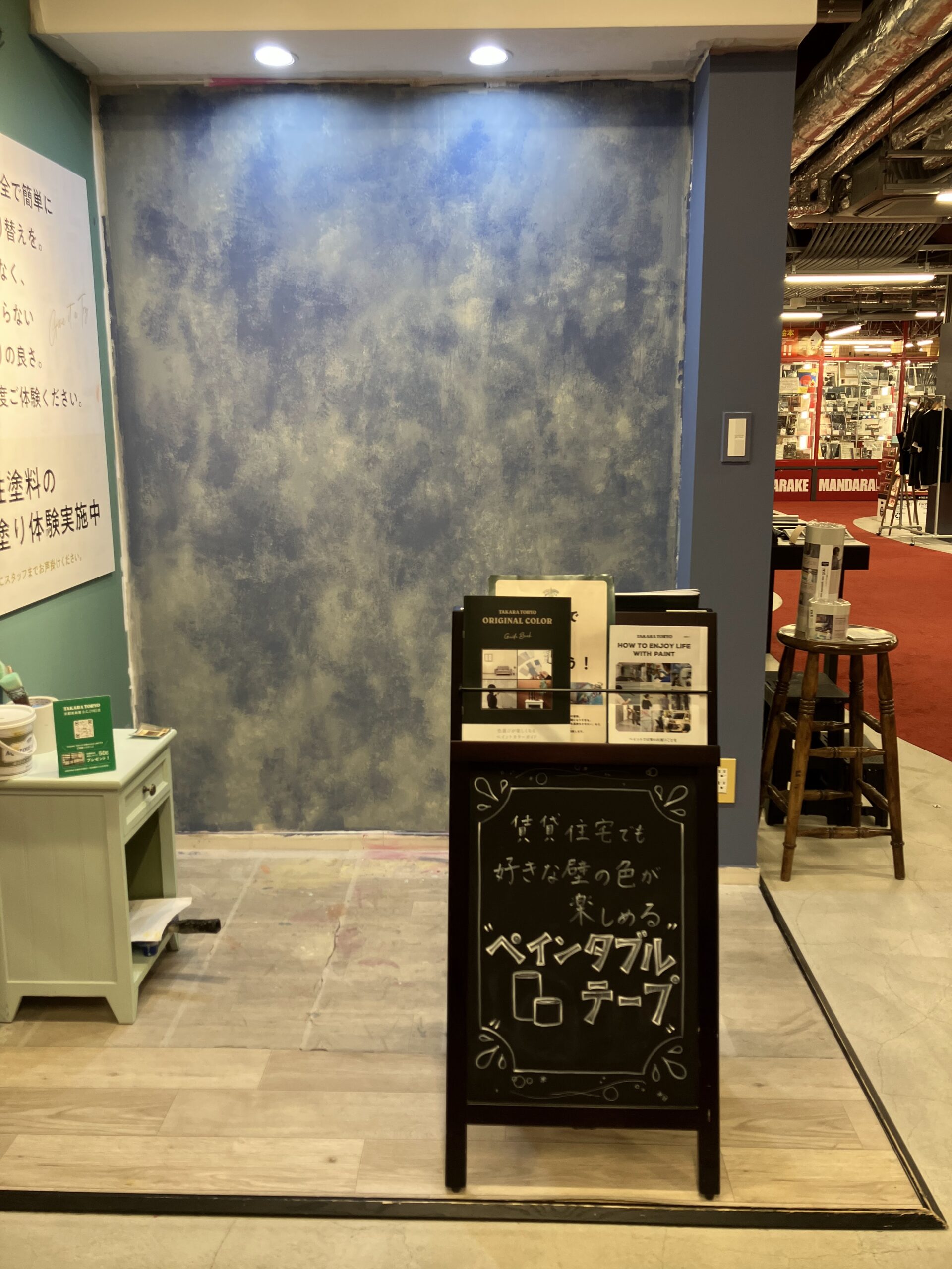 店舗内にある実演用の壁で実際に塗装体験をしていただきました。