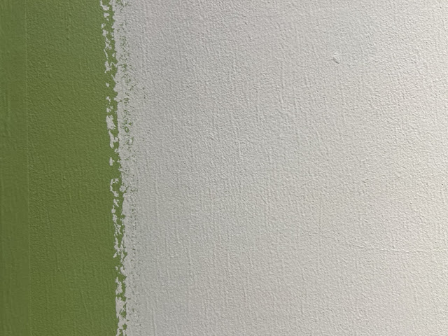 実際に壁塗り体験で、もともと塗ってあったグリーン系の壁にホワイトの塗料で塗っていただきました。