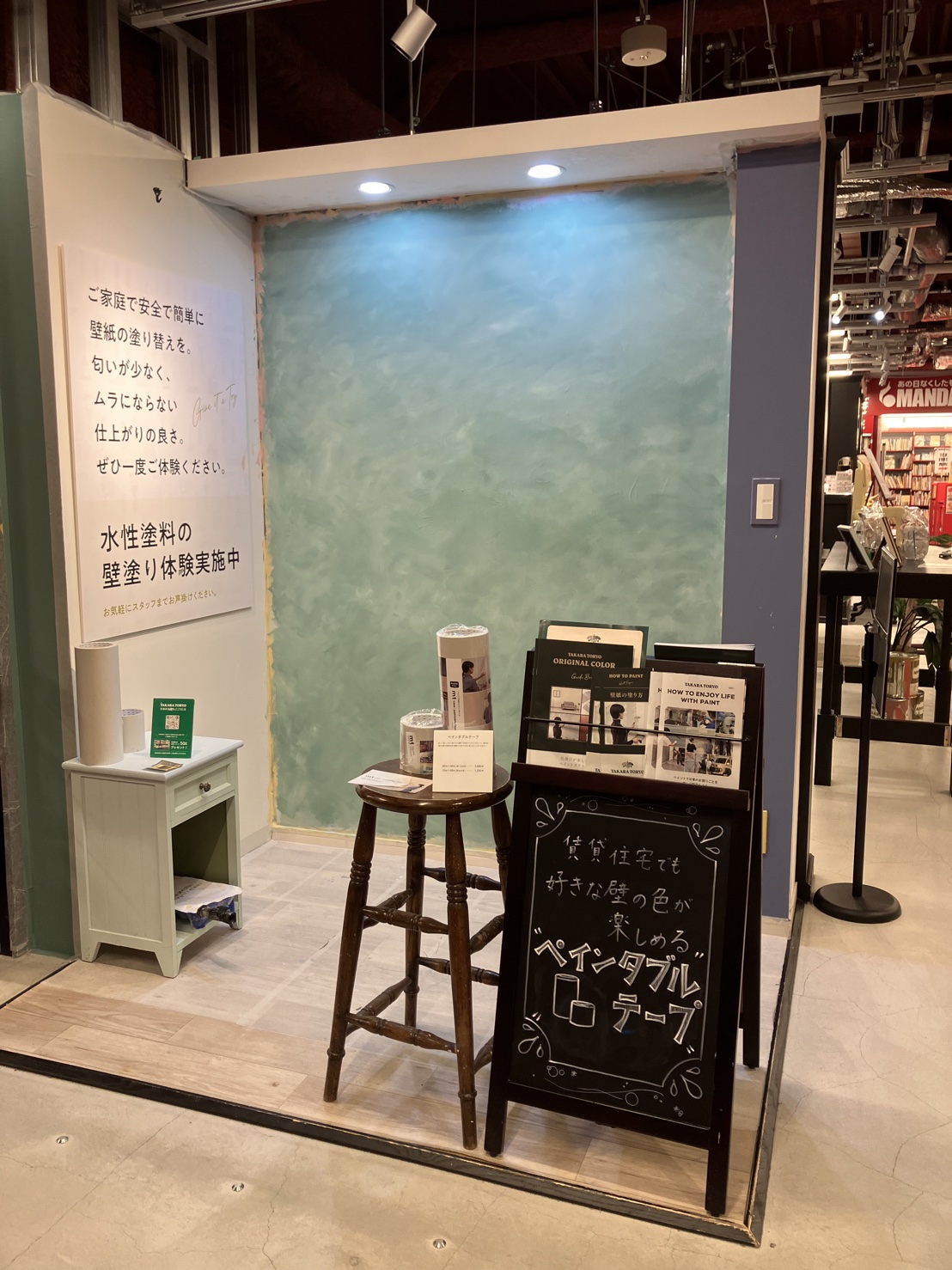 当店の一角にはペインタブルテープが貼られており、定期的に塗装実演を行っています。ご来店いただいた際、実演の様子をご覧いただけることもあるかもしれません。お客様も塗装を体験していただくことが可能ですので、気になる方はお声がけください。