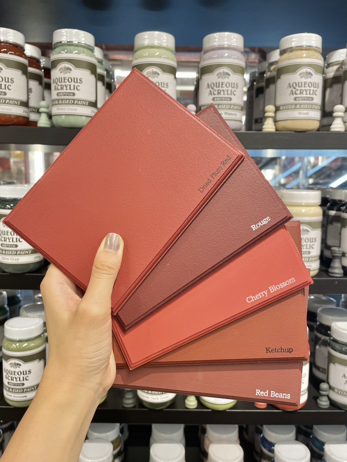 他にも黄・橙・赤系の色は、下地が透けやすい色ですので、何度も塗り重ねる必要があります。