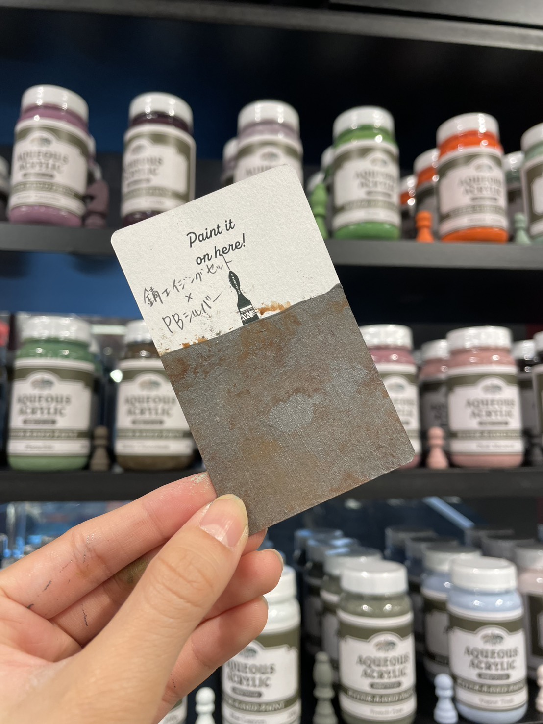 お客様は対処方法が分かって安心されていました。店頭で実演した錆風塗装は見本としてお持ち帰りいただきました。