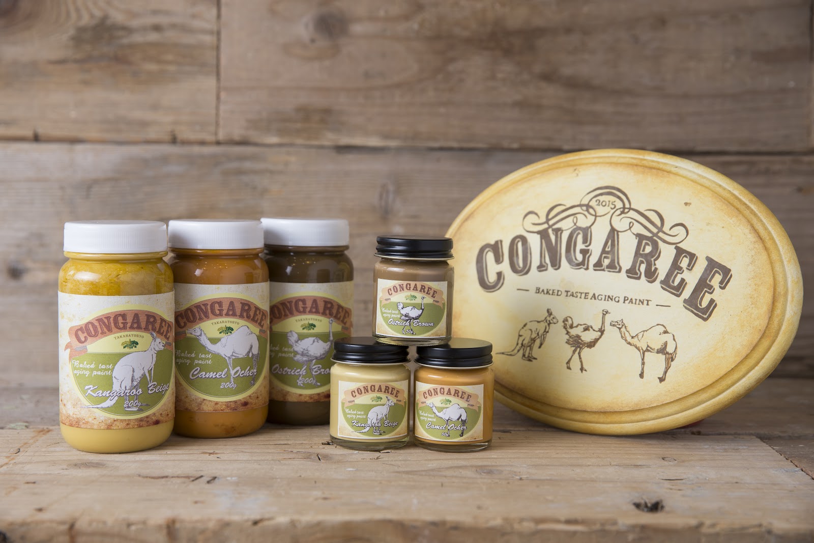 コンガリーは3種類の塗料を重ねて塗装することで、お日様に焼けたような色褪せ感を表現できる塗料です。