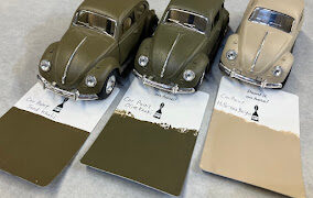 TAKARA TORYO京都店では、2~3色を使って仕上げるエフェクト塗装を店頭の壁にて日々試作中です。