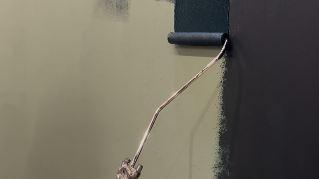 ネイビー×シルバーの2色で高級感のある塗装壁に【エフェクト塗装実演】